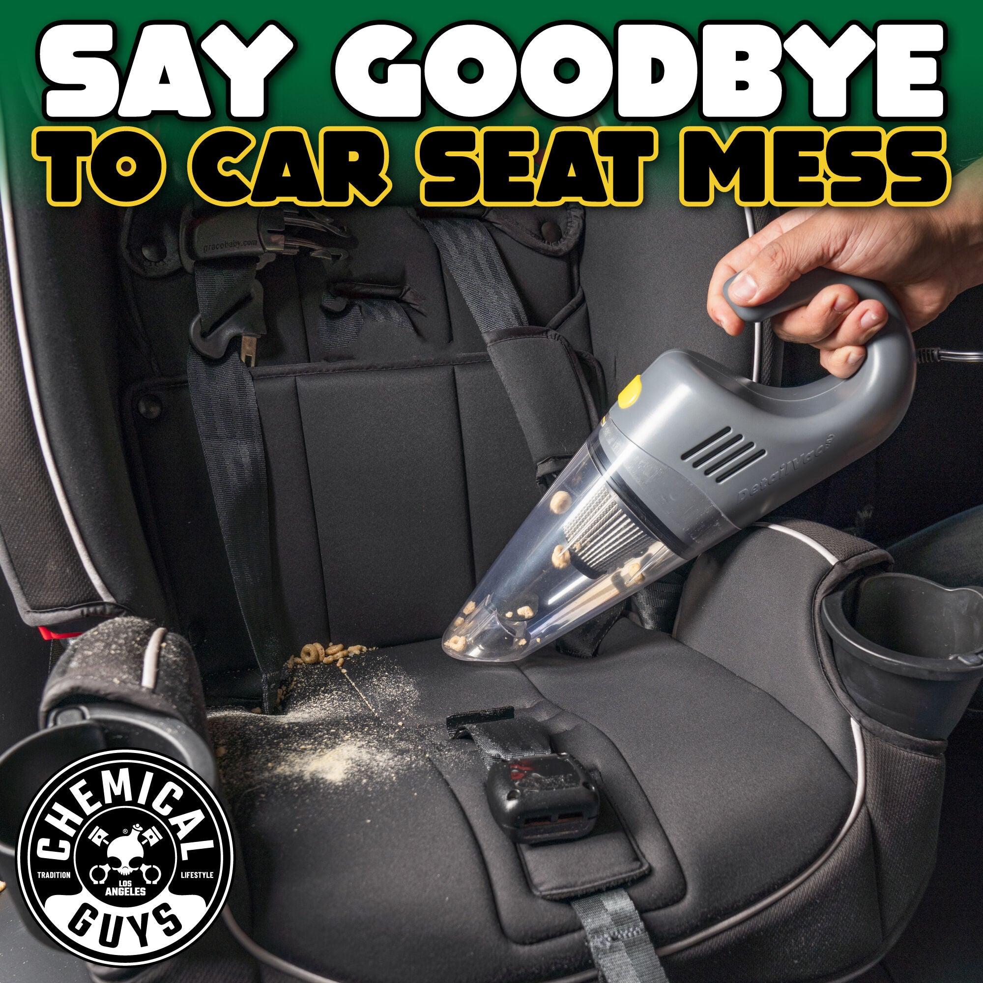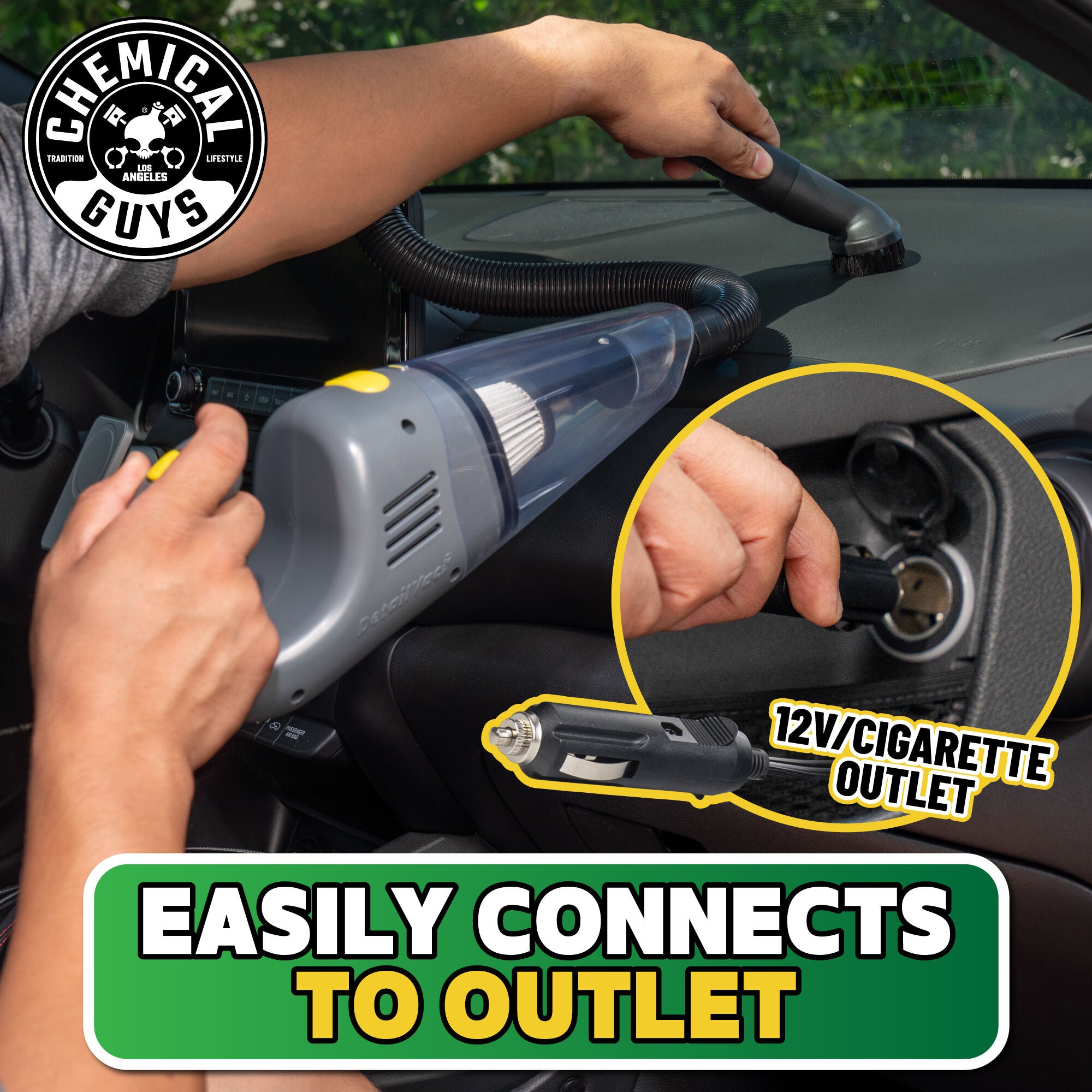 The DetailVac is the powerful. portable handheld vacuum cleaner from Chemical Guys. With a 16-foot cord. you can clean all the hard-to-reach spots in your car or truck without the hassle of a large vacuum or the need for quarters at the gas station.