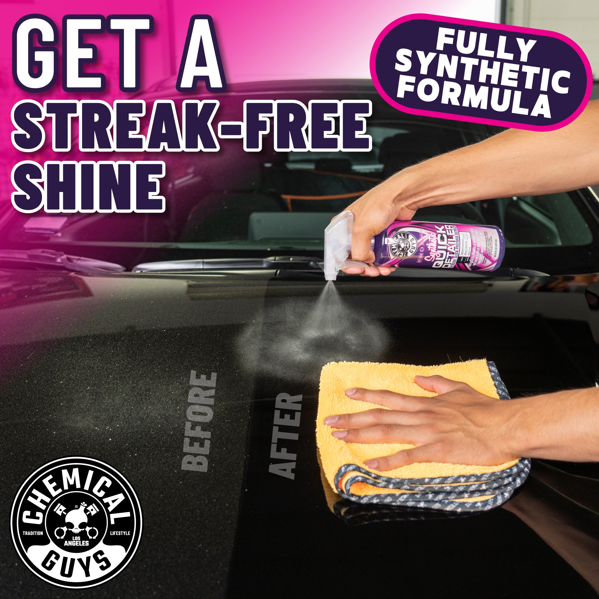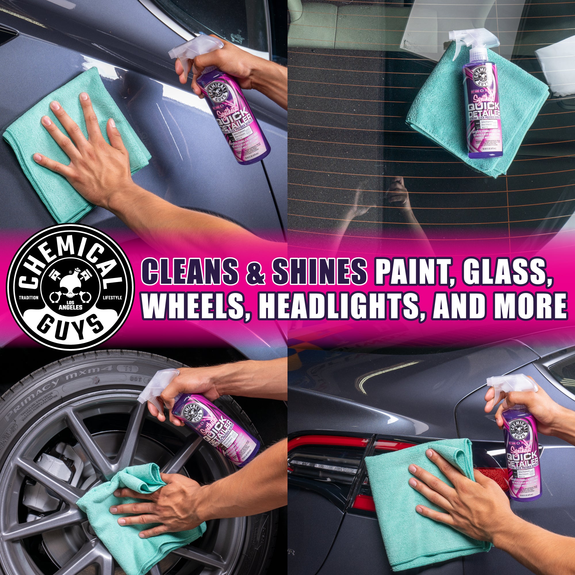 Synthetic Quick Detailer is a fast-acting exterior detailing spray that delivers a streak-free shine with brilliant gloss??without the use of waxes or sealants.