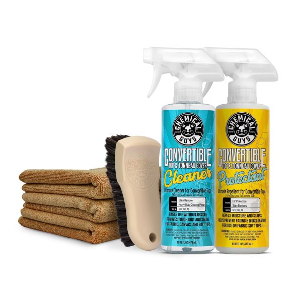 The Fabric Renew Convertible Top Cleaner & Protectant Ultimate Kit contains everything you need to keep your convertible top clean. protected. all while maintaining the OEM look.