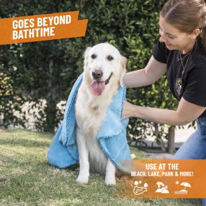 Furrocious is an ultra-plush. super absorbent microfiber pet drying towel that dries your four-legged friend in no time with its large 25 x 36 size that makes it easy to get every inch of them dry as a bone.
