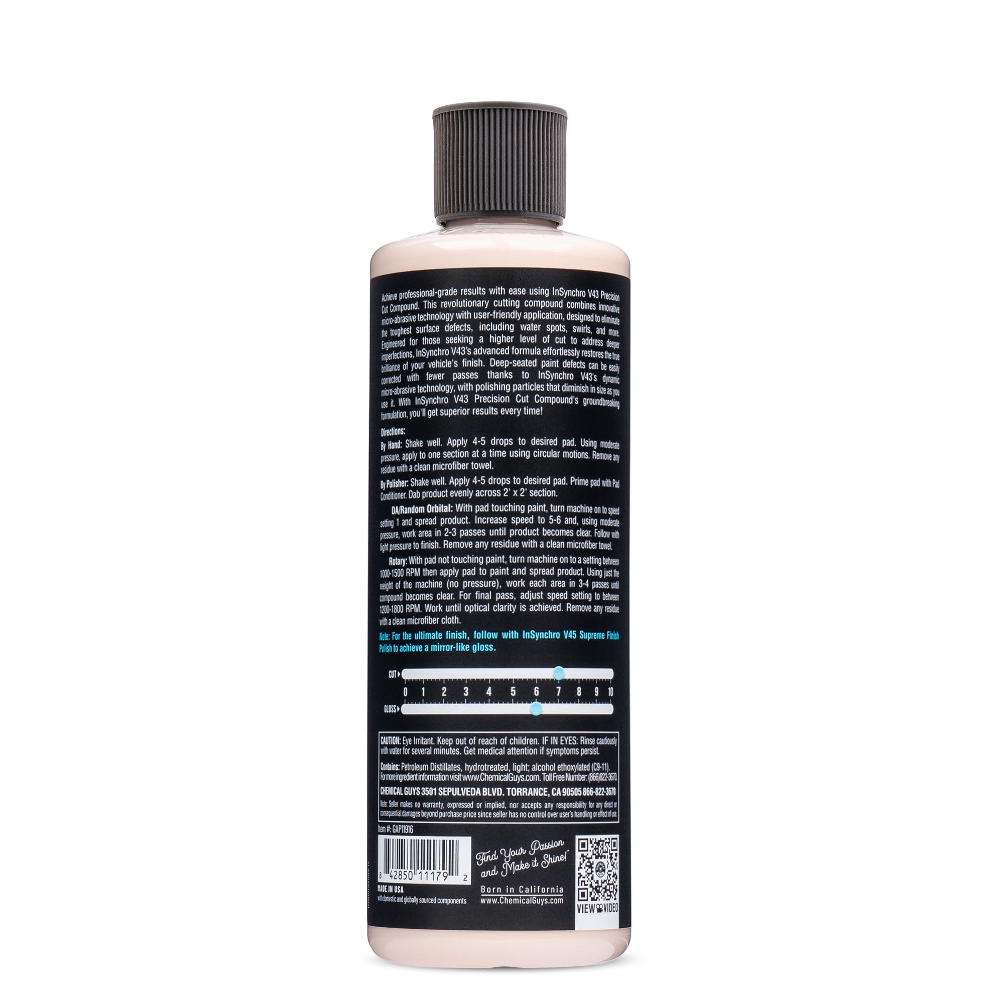 InSynchro V43 is your go-to solution for swiftly eliminating scratches. swirls. oxidation. water spots. and minor paint imperfections??all without creating a cloud of dust. Thanks to its ultra-refined adaptive abrasives. this polish reduces in size during application. allowing for effective corrections in fewer passes. Protect your vehicle’s surfaces while saving precious time and achieving a flawless finish.