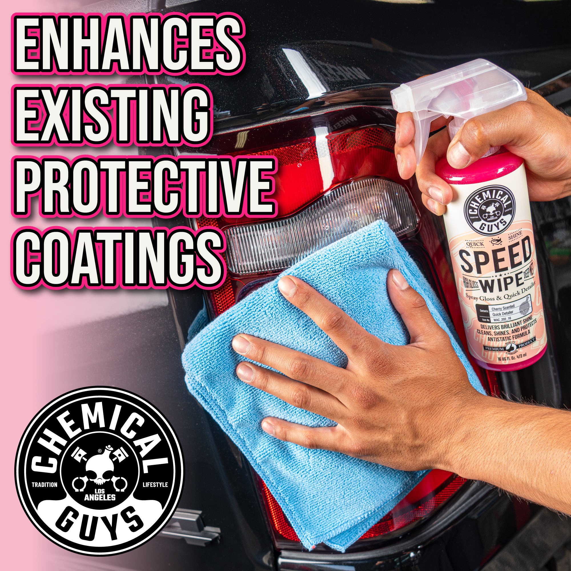 Speed Wipe Quick Detailer is the ultimate high-shine gloss for any exterior! Its wax-free formula cleans paintwork and mirrors. protecting the surface against harmful UV rays and delivering a static-free shine in minutes.