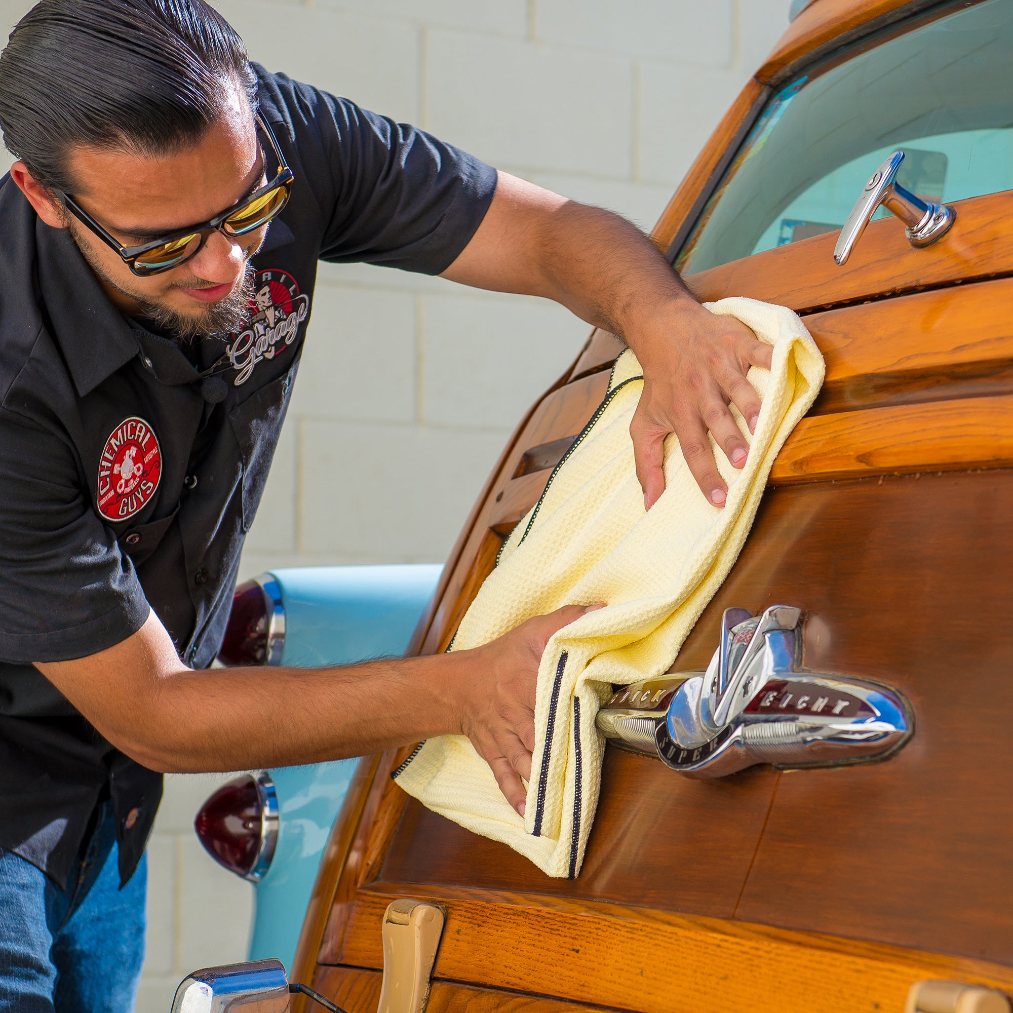 The Waffle Weave SUV Microfiber 35 x 26 Towel is an ultra-soft silk-edged towel made of 70/30 microfiber and unique waffle grooves to trap liquids and dirt the same way waffles trap syrup and butter. quickly drying the surface for perfect streak-free on any size SUV.